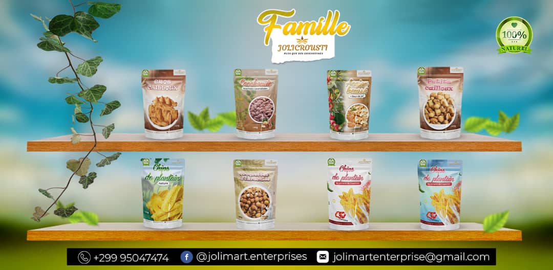 Nous sommes un établissement de production et de commercialisation de grignotines, de jus, dessert crée en 2015 N°RCCM RB /COT/15 A 22782